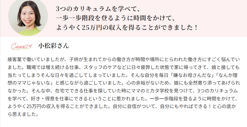 ママのミカタ学校が「サポートが手厚い」と言われるのは、ただ説明が丁寧だからではありません。そのサポートによって、実際に成果を出している人が多いからです。