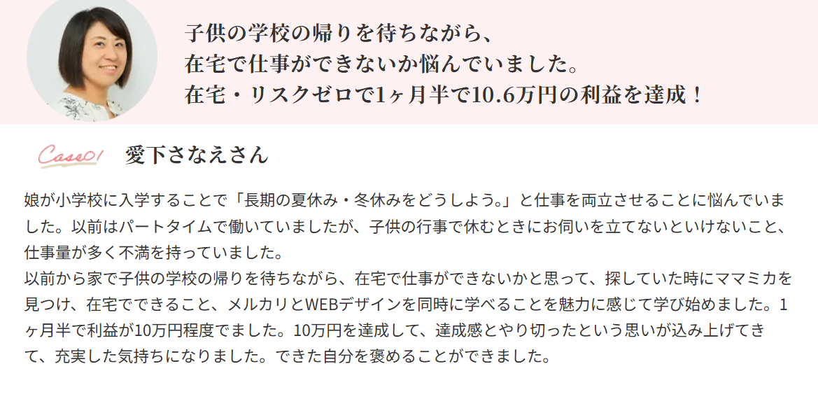 たとえば、メルカリワークでは学んですぐに売上が立ち、数週間で受講料の一部を回収できました。