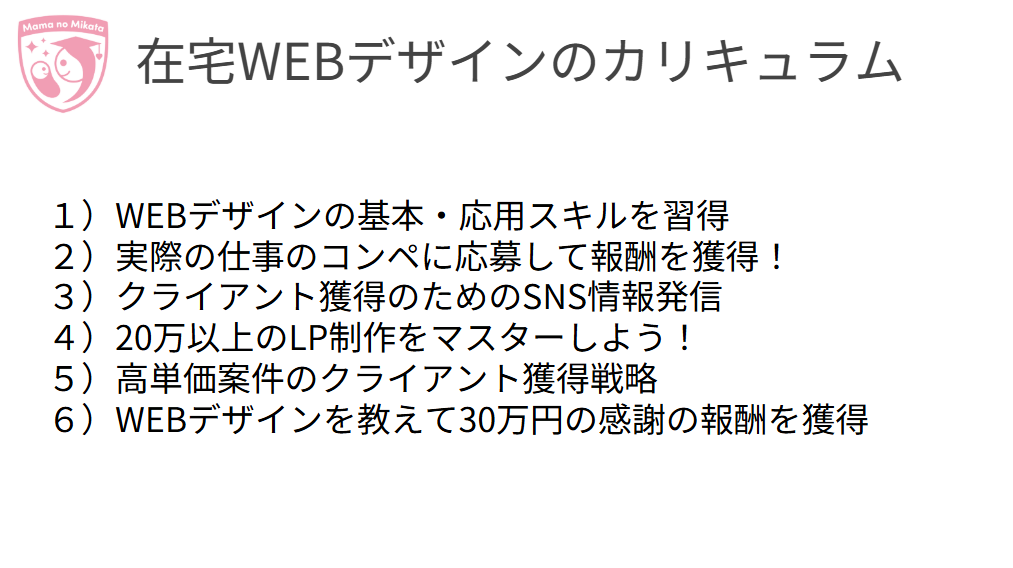 ママのミカタ学校のカリキュラムは、初心者がつまずかないようにとても丁寧に作られていました。